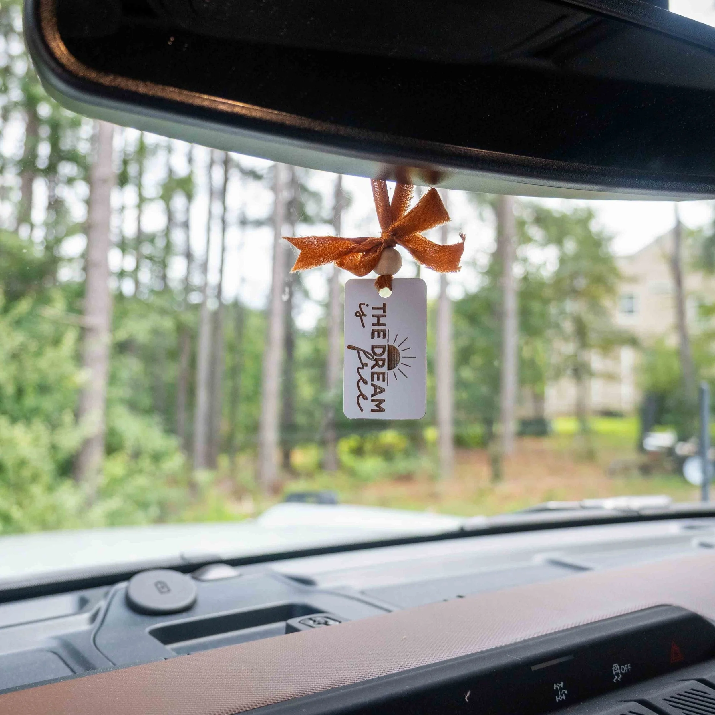The soft silk ribbon adds a lovely touch that fits any decor. Lightweight and strong, it’s a great way to add a simple, inspiring decoration to your car, home, or office. A meaningful gift or personal charm that inspires anywhere.